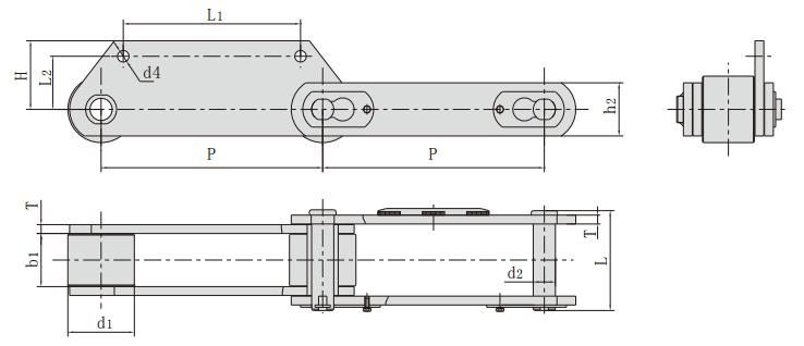 P500F10,帶附板輸送鏈,工程鏈條,鏈條規格參數