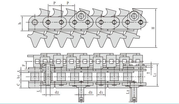 雙節距帶特殊附件輸送鏈